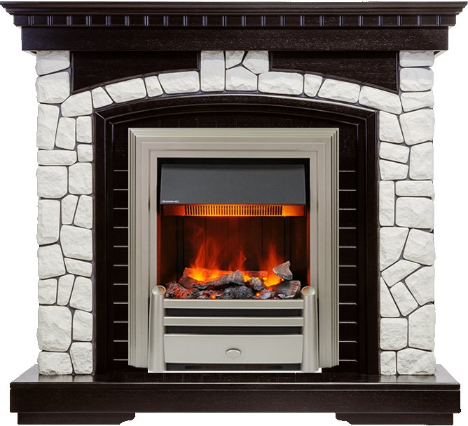 Каминокомплект Dimplex Glasgow прекрасно подойдет для интерьеров в стиле шале или кантри. Выполнен из материала, имитирующего натуральный камень. Деревянные элементы обрамления могут быть нескольких цветовых решений.