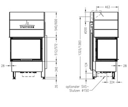 - Размеры очага ШхГхВ, (мм) 520x232x620