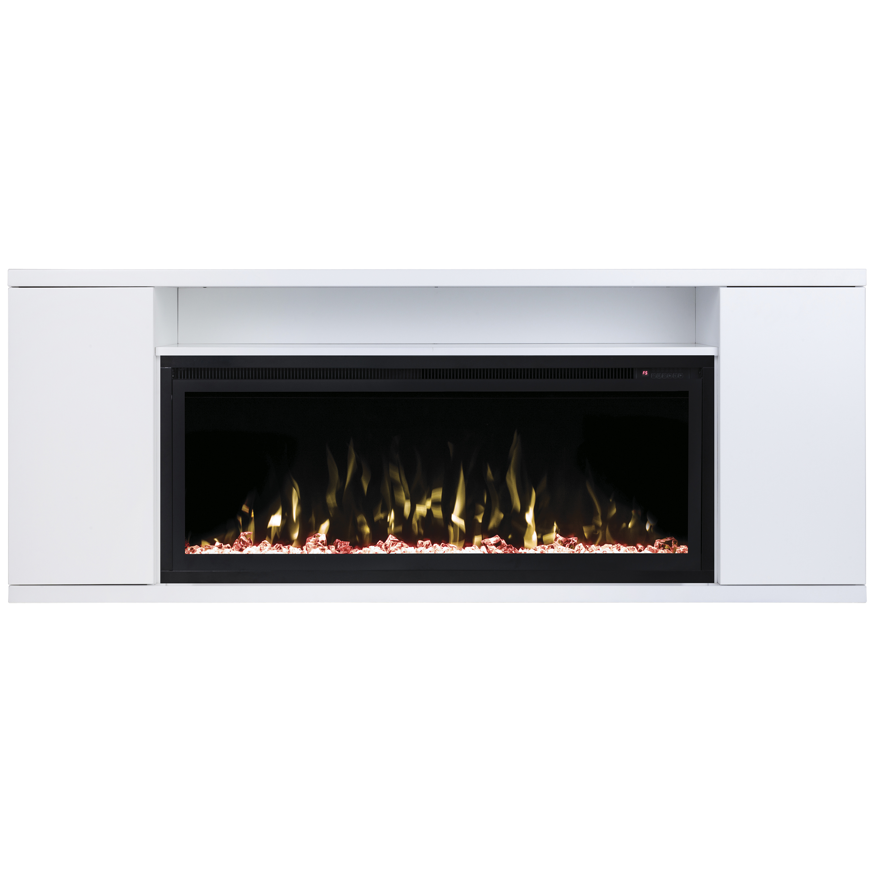Каминокомплект RealFlame Bergen 42 WT очаг Saphir 42 в современном минималистическом стиле. Мультимедийная, вместительная полка над очагом является особенностью данной модели. Так же 6 боковых полок и бесшумное закрытие дверок.