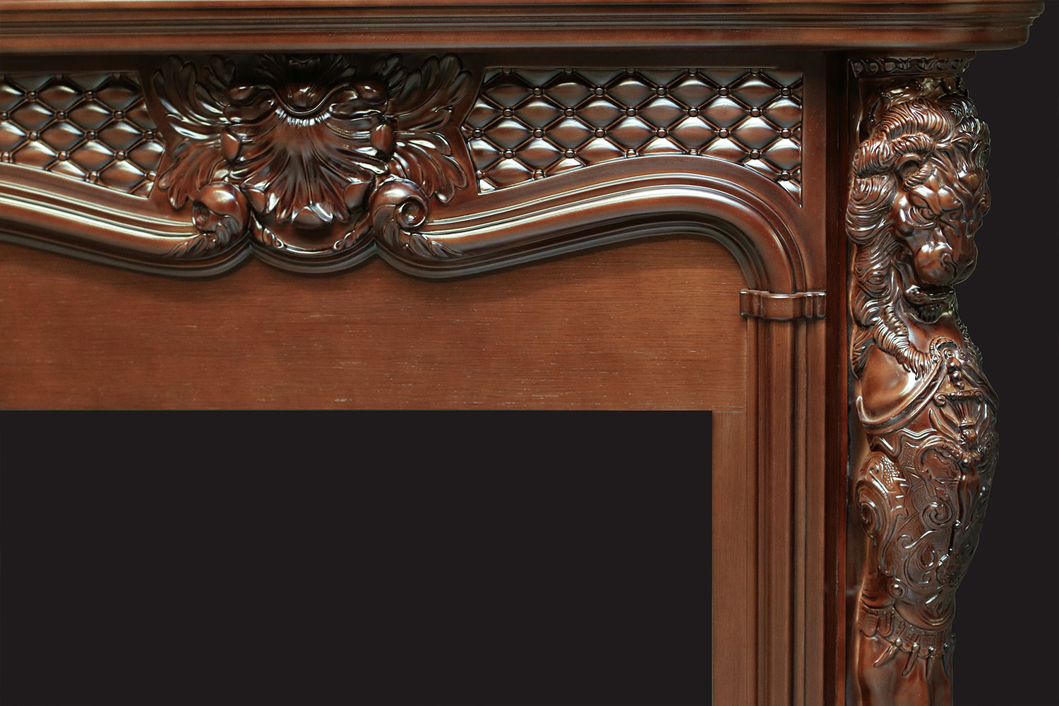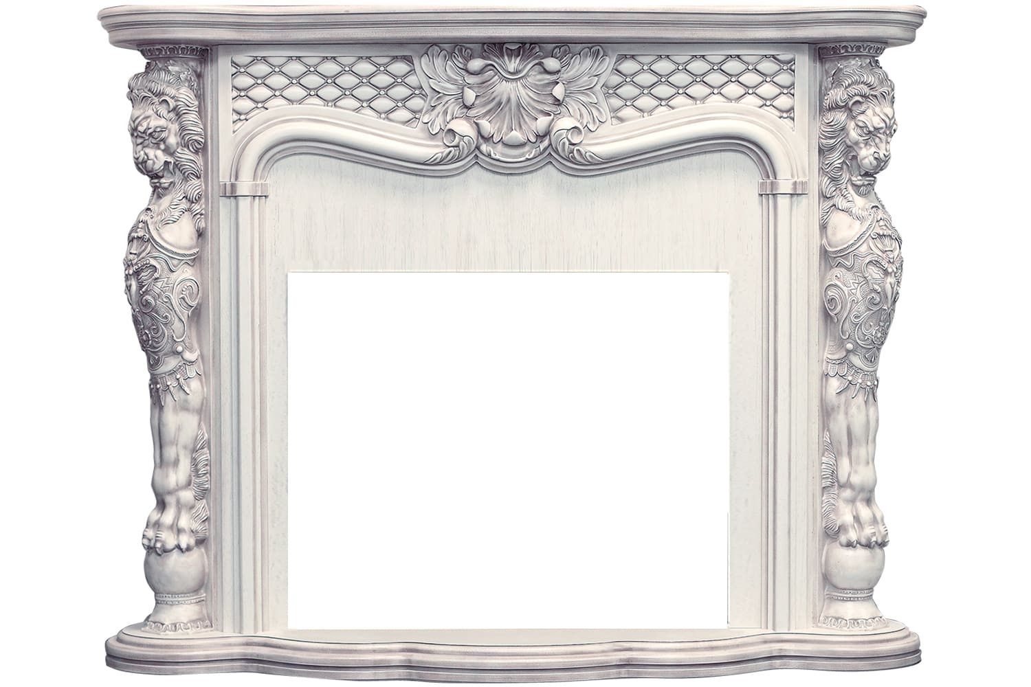 Портал Dimplex Castle выполнен в стиле барокко. Резной декор с оригинальными мифическими сюжетами и изящные линии конструкции придают модели старинный вид. Дополненный колоннами в виде львиных фигур, такой камин станет прекрасным приобретением для любителей богатых и необычных дизайнов.