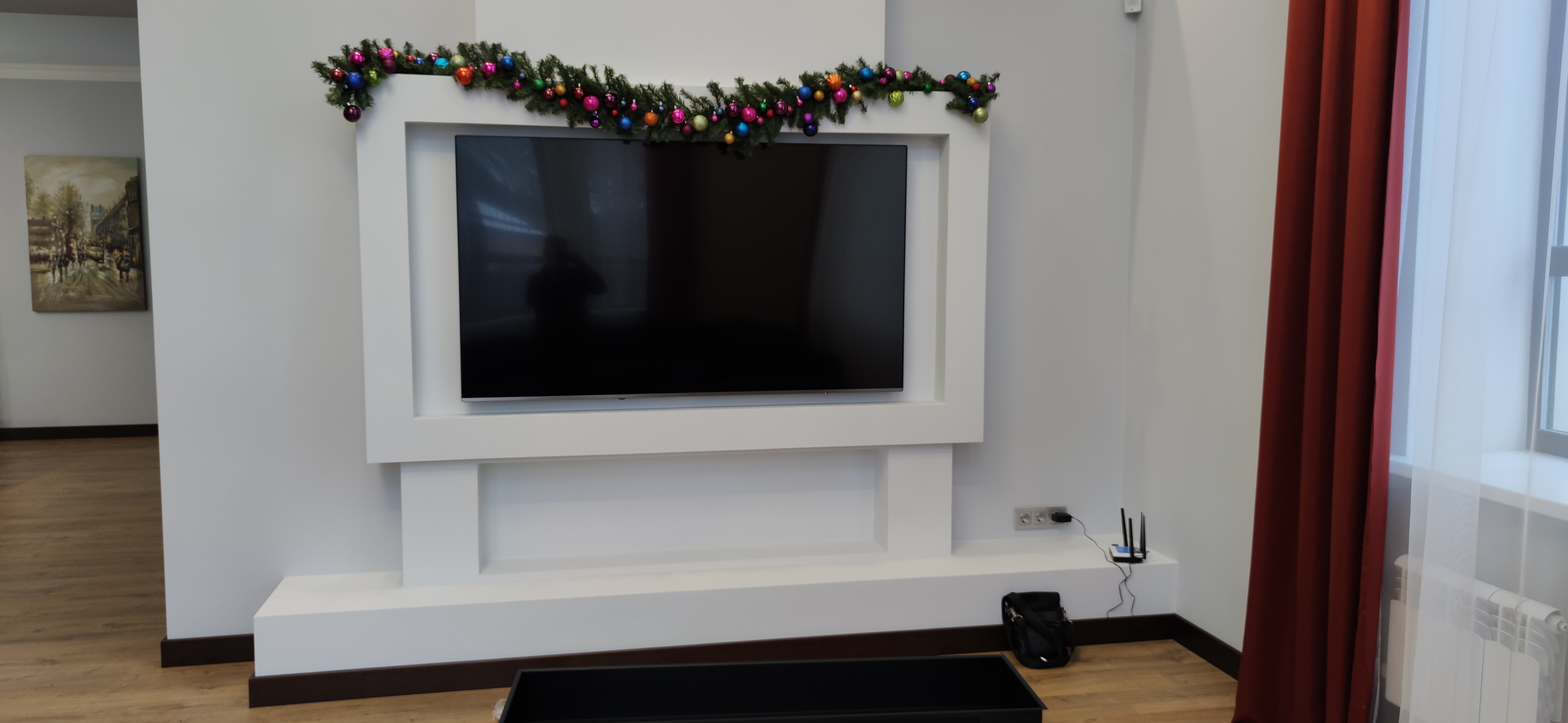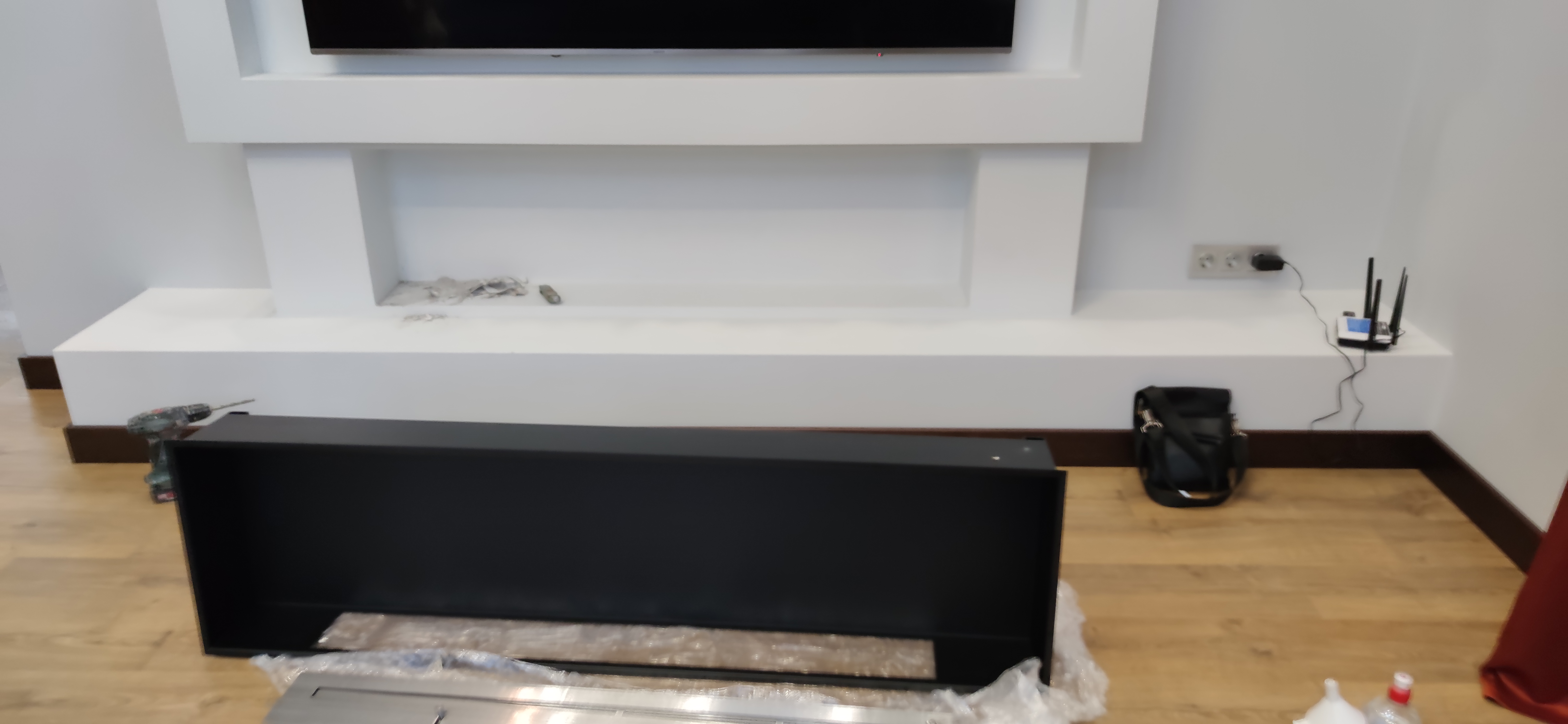 Классический биокамин из стали Firezo Classic был установлен под телевизор в большой гостиной. Ниша уже была. И нам пришлось изготовить биокамин под индивидуальные размеры. Толщина корпуса метала 2 мм. Толщина корпуса топливного блока сделанного из нержавеющей стали 3 мм. В нише делался вырез под погружение топливного блока биокамина. Гарантия на биокамин 10 лет Дополнительно установлены защитные закаленные стекла.
