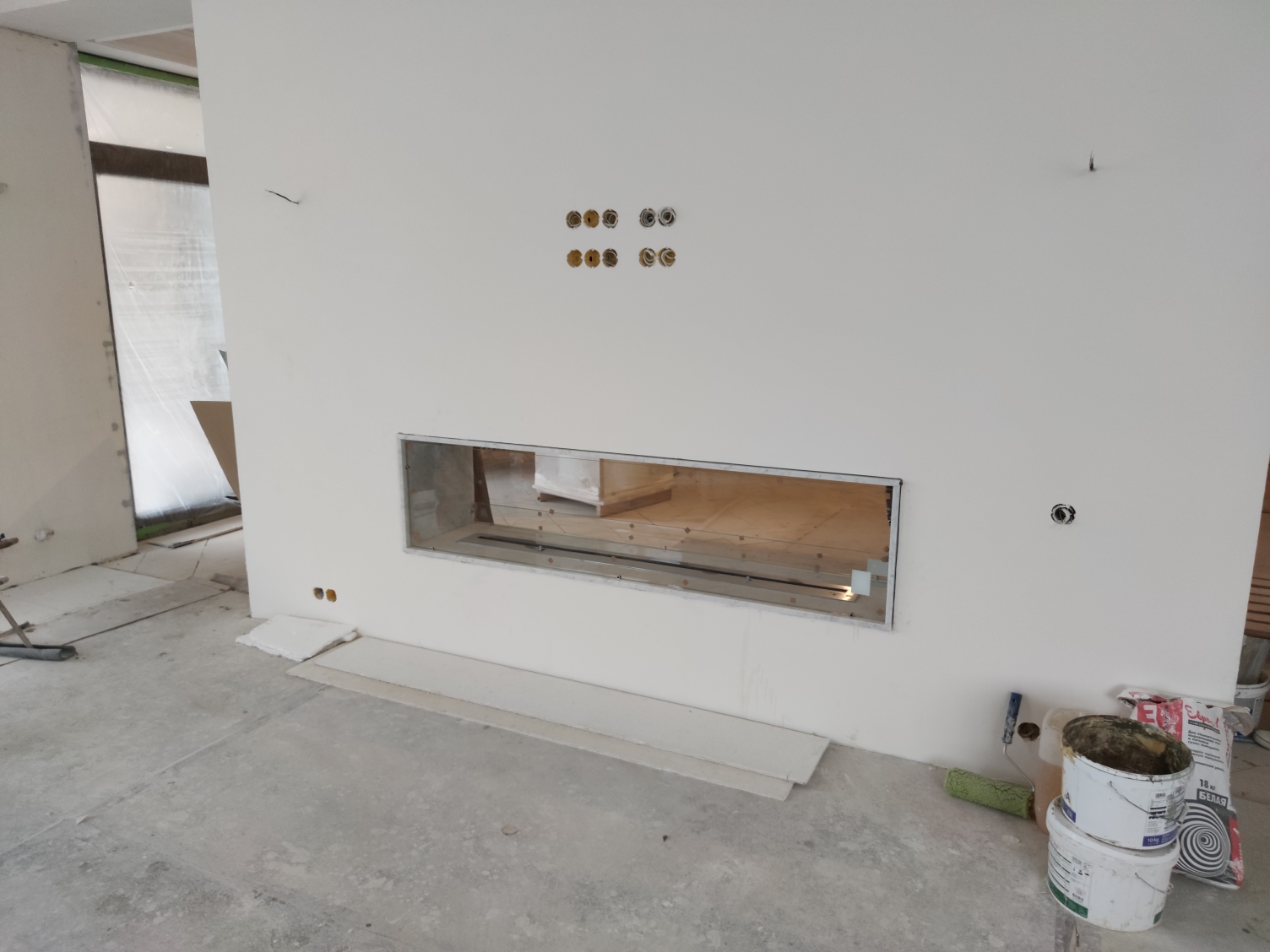 Встраиваемый биокамин в мраморном сквозном портале Материал портала: Мрамор Carerra Bianco толщиной 2 см Длинна 2000 мм высота 400 мм Длинна линии огня 1700 мм Топливный блок Firezo 1700 Для жесткости конструкции делали несущую раму на которую вклеивали мрамор Одна сторона закрыта совсем закаленным стеклом во всю высоту. Работа заняла месяц, но можем и быстрее. Посмотрите видео, что получилось