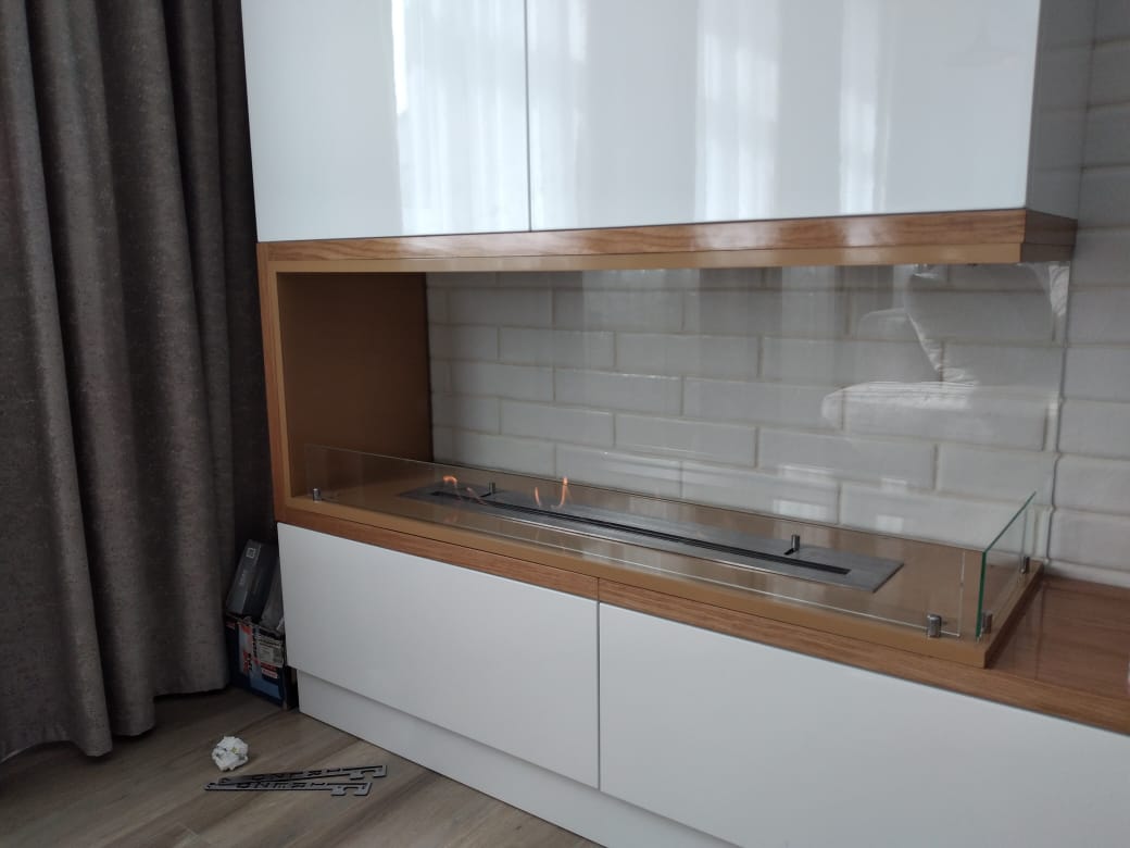 Угловой топливный блок Firezo Bruciatore, длинной 1230х365 для нашего клиента из Москвы. Популярная модель, которую дизайнеры могут дополнять стеклом. В данном проекте нужна была встроенная модель, выбор клиента определил широкий функционал топливного блока: