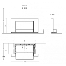 Компания Piazzetta производит также камины ультрасовременных форм, есть и минималистические модели: например, встроенные камины, которые представляют собой ровное прямоугольное стекло в стене, нише или колонне, за которым бьётся яркое пламя.