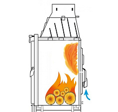 В топках «SEGUIN» используется система разводка тепла, из-за чего КПД составляет порядка 70%. Скорость горения дров в топке Вы сможете регулировать самостоятельно.