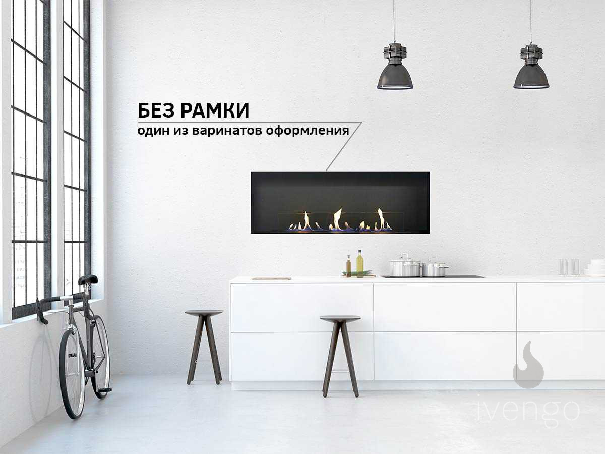 Встраиваемый биокамин Ivengo Standard 1000x300x500 мм без Black Side – одна из наиболее популярных моделей фронтальных биокаминов с термозащитой. Камин при монтаже достаточно просто вставить в готовую нишу в стене.