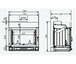 Стальной вертикальный инсерт с первичным и вторичным регистром подачи воздуха, благодаря чему перед попаданием в очаг воздух сначала прогревается.