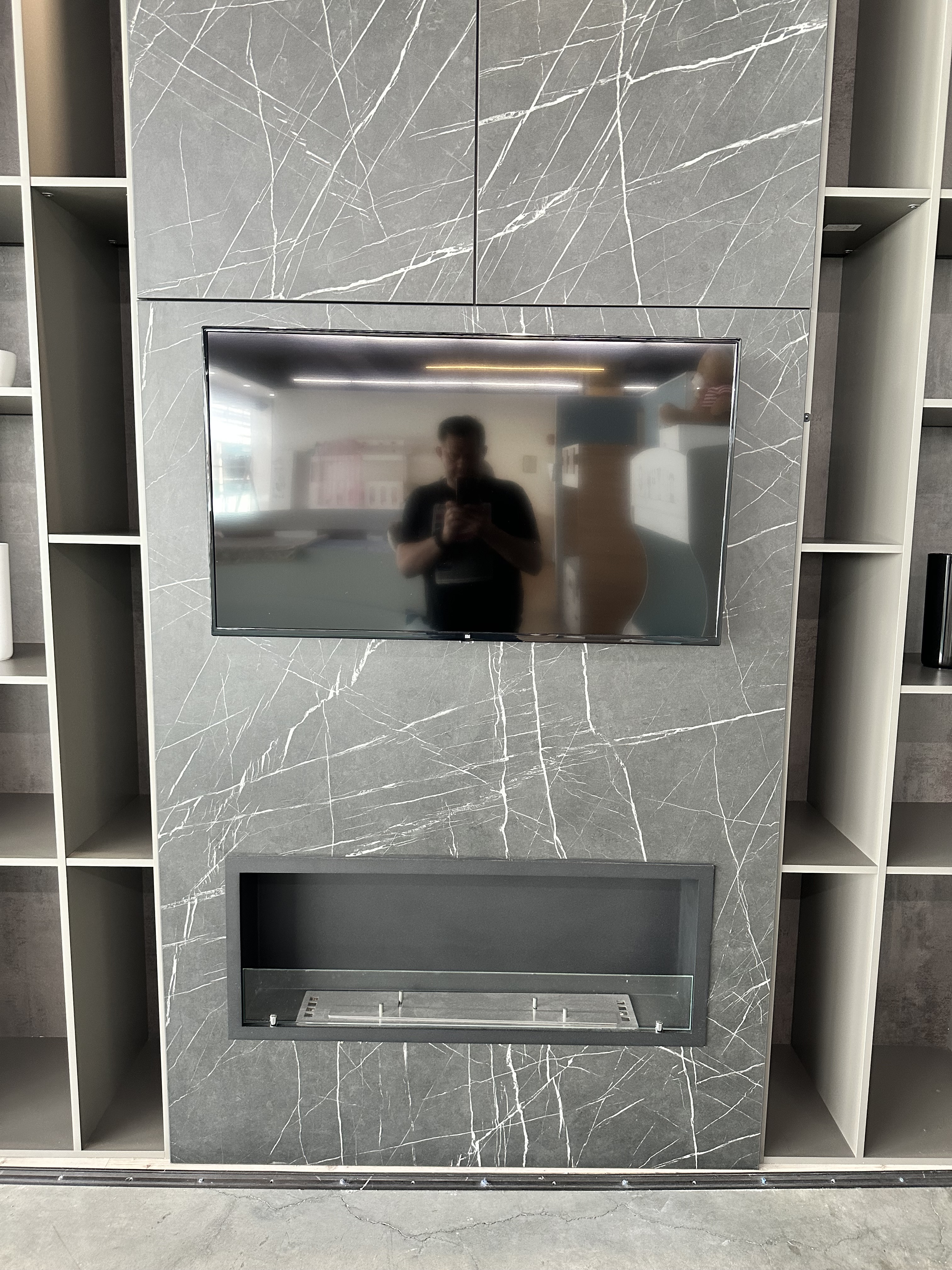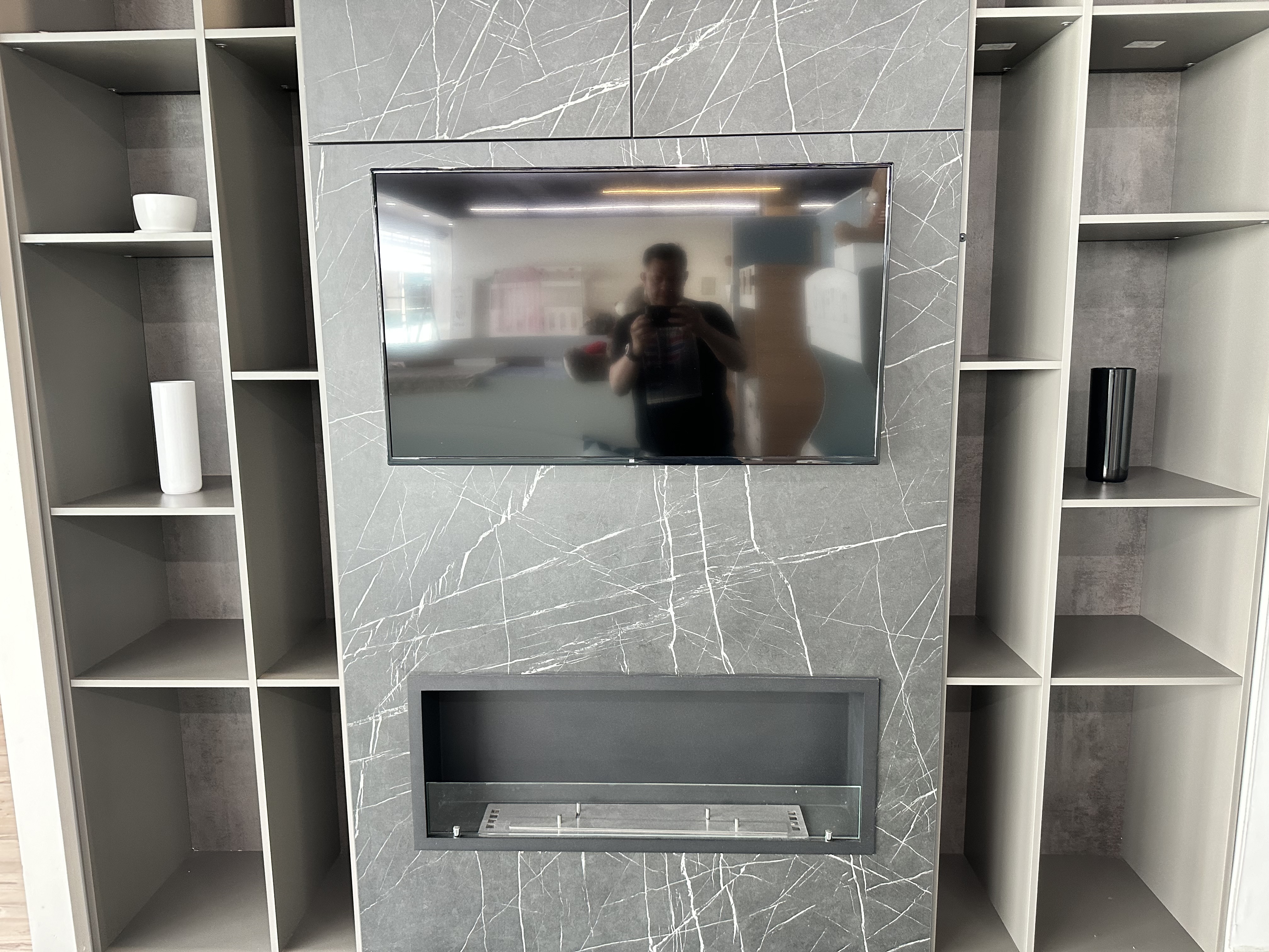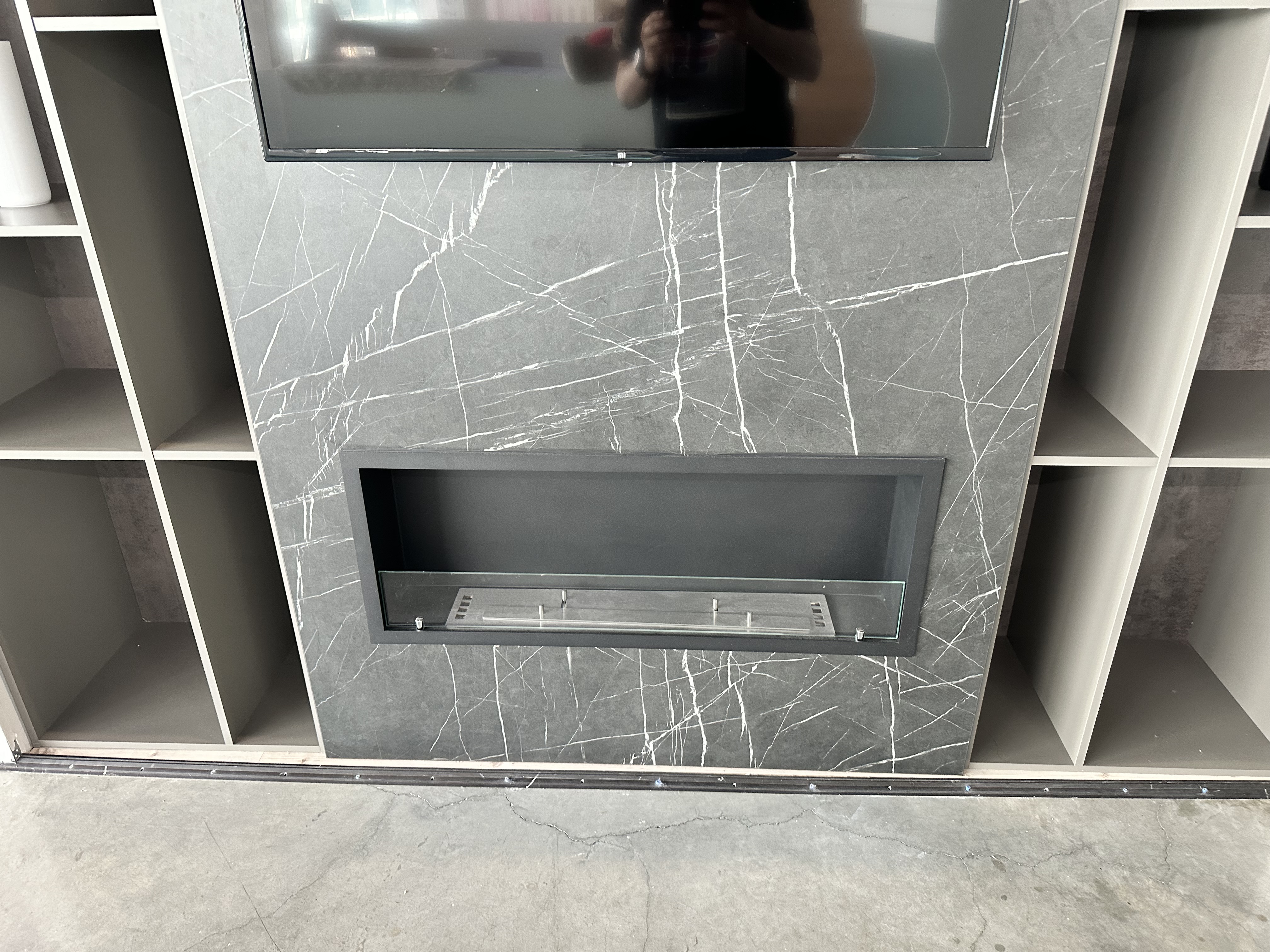 Семья Ирины сделала не большой шкаф, и на дверь решили повесить на нее не только телевизор, но и встроенный биокамин.Подбирая биокамин для своей квартиры, они смотрели на размер, возможность встроить его, и конечно стиль. Их выбор остановился на Firezo Classic.